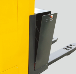 ■ 貨叉頭部設(shè)計(jì)有導(dǎo)向輪,進(jìn)出托盤順暢。
