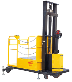 n 采用雙驅(qū)差速轉(zhuǎn)彎,轉(zhuǎn)彎半徑1300 n 采用雙安全保護(hù)措施,當(dāng)人體腳伸出車體,車輛將不可行走,避免貨架與車體夾傷操作人員。 n 當(dāng)起升高度大于500mm以上車輛將自動減速,保證高空