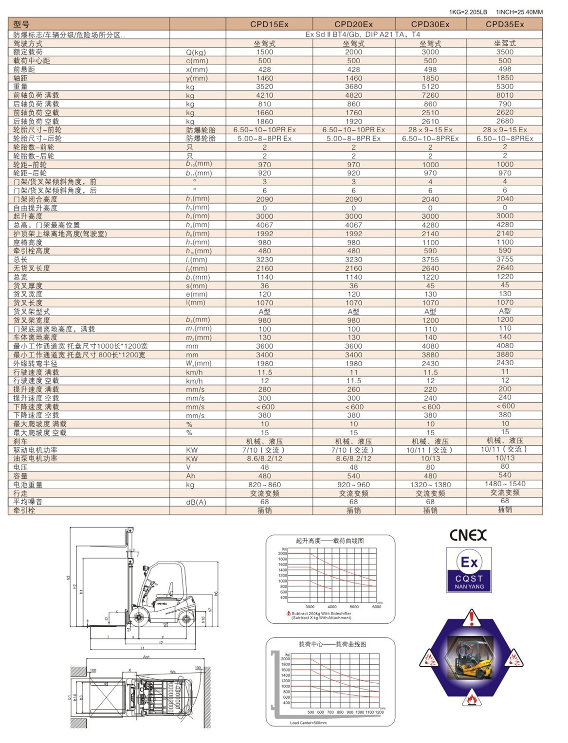 我公司生產(chǎn)的交流變頻防爆電動叉車,嚴格按照國家相關(guān)防爆標準設(shè)計和制造。屬于工程用的II類防爆電器設(shè)備,防爆等級Ex d mb s IIB T4 Gb / DIP A21 TA.T4適用于爆炸性氣體環(huán)境的1區(qū)和2區(qū)危險場所,粉塵環(huán)境的22、21區(qū)危險場所,使用該車高度安全,功能齊全。