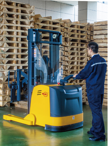 ■承載能力可達(dá)1噸。站人平臺起升高度1.2米。方便高層貨架貨物的裝卸和揀選工作。站人平臺前部配有小置物架可承載60kg左右的輕便貨物。EPS電子轉(zhuǎn)向系統(tǒng)加上自主研發(fā)設(shè)計的轉(zhuǎn)向舵