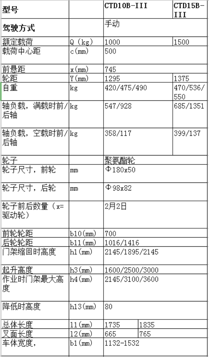 半電動(dòng)堆高車CTD10B-III/15B-III