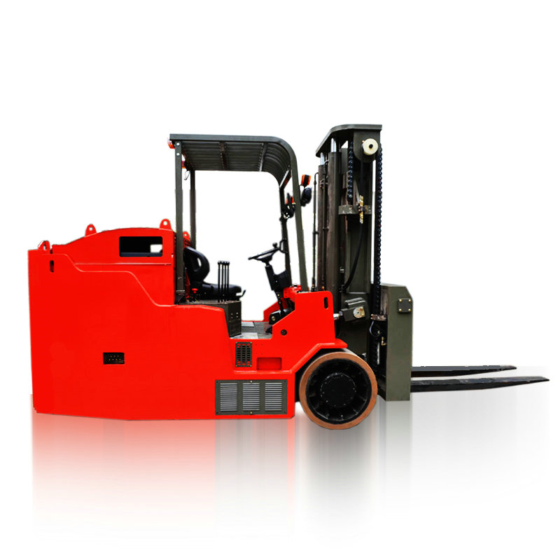 據(jù)悉,該型號蓄電池平衡重式叉車最大起身高度為3000MM,最大起重重量達(dá)到13.5噸,與同噸位內(nèi)燃平衡重相比,具有軸距小、轉(zhuǎn)彎半徑小、低重心、具有極佳的轉(zhuǎn)向穩(wěn)定性;雙泵合流液壓系統(tǒng),能量消耗小,維護(hù)成本低,自動無級調(diào)速油泵驅(qū)動控制系統(tǒng),更節(jié)能、噪音小、延長電機(jī)壽命;自主研發(fā)的大噸位轉(zhuǎn)向橋機(jī)構(gòu),承載力大,轉(zhuǎn)向更輕松;采用高性能聚胺脂材料特制車輪,承載力大,變形量小。