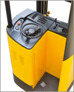 寬敞的駕駛室?guī)в惺痔崾綌嚯婇_關(guān),多功能顯示儀表具有電量顯示、工作時(shí)間累計(jì)顯示 、故障代碼顯示等。